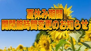 夏休み期間中は開館時間が変更となります。 ◎通常期間    開館16:00 閉館21:30 ◎夏休み期間 7月19日(金)~8月23日(土)  開館 8:50 閉館18:00  尚、8月12日(月)~...
